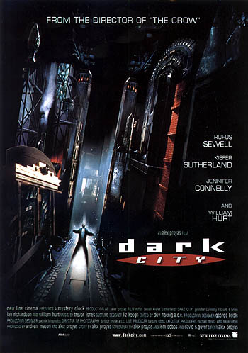 DARK CITY Dirección: Alex Proyas, 1998 Guión: Lem Dobbs, David S. Goyer y Alex Proyas (de una historia de Alex Proyas) Fotografía: Dariusz Wolski Música: Trevor Jones Reparto: Rufus Sewell, Kiefer Sutherland, Jennifer Connelly, Richard O'Brien, William Hurt Alex Proyas es uno de esos realizadores a los que muchos ya lapidan por proceder del campo de la publicidad y el videoclip, como demostró el recibimiento a su brillante segunda película The Crow, una de las obras fundamentales del neogótico de los años 90 conceptualizado por Tim Burton. Pero como ocurrió con David Fincher a partir de su segundo trabajo, la magistral Seven, Proyas consigue con su nuevo filme, Dark City, encender la señal de atención hacia el que puede ser uno de los talentos cinematográficos dominantes de final de siglo. Y es que DarkCity es un curioso cocktail de referencias que van desde el culto a los mundos kafkianos hasta las raíces más pulp del comic y la ciencia-ficción tradicional, pasando por homenajes a los infiernos visuales de filmes tan decisivos en el fantástico moderno como Hellraiser (los villanos del filme recuerdan a los cenobitas de aquel filme) o 12 Monkeys. Pero ese juego culterano es utilizado por Proyas de forma inteligente, sin caer en la cita fácil ni repetida, convirtiendo su filme en un juego apasionante ilustrado de forma brillante, alejado tanto del lenguaje publicitario y videoclipero (que aún permanecía en The Crow), como de las modas más rutinarias del moderno cine de acción. Dark City es así uno de los filmes de género más atípicos de los últimos años, un elogio de las tinieblas configurado como un juego de cajas chinas que prefigura un desenlace paradójico, un espectáculo fascinante que demuestra que el emprobecido cine fantástico de los años 90 aún tiene algo interesante que decir en las puertas de un nuevo milenio que siempre le sirvió de referencia.