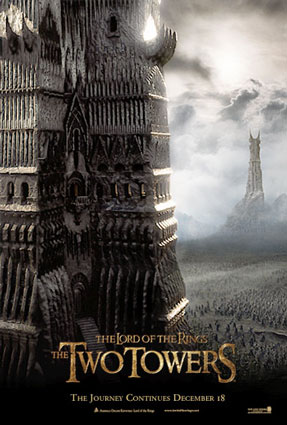 Dirección: Peter Jackson, 2002 Guión: Philippa Boyens, Peter Jackson, Steven Sinclair, Frances Walsh (Basado en la novela de J.R.R. Tolkien) Música: Howard Shore Fotografía: Andrew Lesnie Reparto: Elijah Wood (Frodo Baggins), Sean Astin (Sam), Ian McKellen (Gandalf), Viggo Mortensen (Aragorn), Orlando Bloom (Legolas), John Rhys-Davies (Gimli), Christopher Lee (Saruman), Liv Tyler (Arwen). El Señor de los Anillos: Las Dos Torres. La tarea que tenía Peter Jackson con "Las Dos Torres" no era fácil. Primero debía superar o igualar el éxito que había conseguido con "La Comunidad del Anillo", primera parte de la trilogía fílmica de "El Señor de Los Anillos", éxito de público y de crítica. Además, desde el punto de vista cinematográfico, la segunda parte de la aventura escrita por J.R.R. Tolkien, era más compleja de realizar porque debía combinar, dar agilidad y continuidad a tres historias que se desarrollan en forma paralela, sin llegar a juntarse nunca, luego de la separación de Frodo, Sam, Merry, Pipin, Gandalf, Boromir, Aragorn, Legolas y Gimli, a quienes se les conoce como la "Comunidad del Anillo", al final de la primera película. Sin embargo, el director neozelandés vuelve a darnos una muestra de su habilidad tras las cámaras, con una puesta en escena ágil y entretenida, pese a los 179 minutos que dura la película. Pasa con facilidad desde la travesía de Frodo, Sam y Gollum hacia Mordor; a seguir a Legolas, Aragorn y Gimli en su intento de rescatar a Merry y Pipin, que habían sido capturados por los guerreros de Sarumán al final de la primera película. Luego nos traslada al interior del Bosque Negro, para presentarnos a Bárbol y los Ents y, finalmente, nos lleva a las profundidades del Abismo de Helm, para ser testigos de la batalla entre los Jinetes de Rohan, ayudados por Aragorn, Gimli, Legolas y un ejército de Elfos, contra las fuerzas de Sarumán.